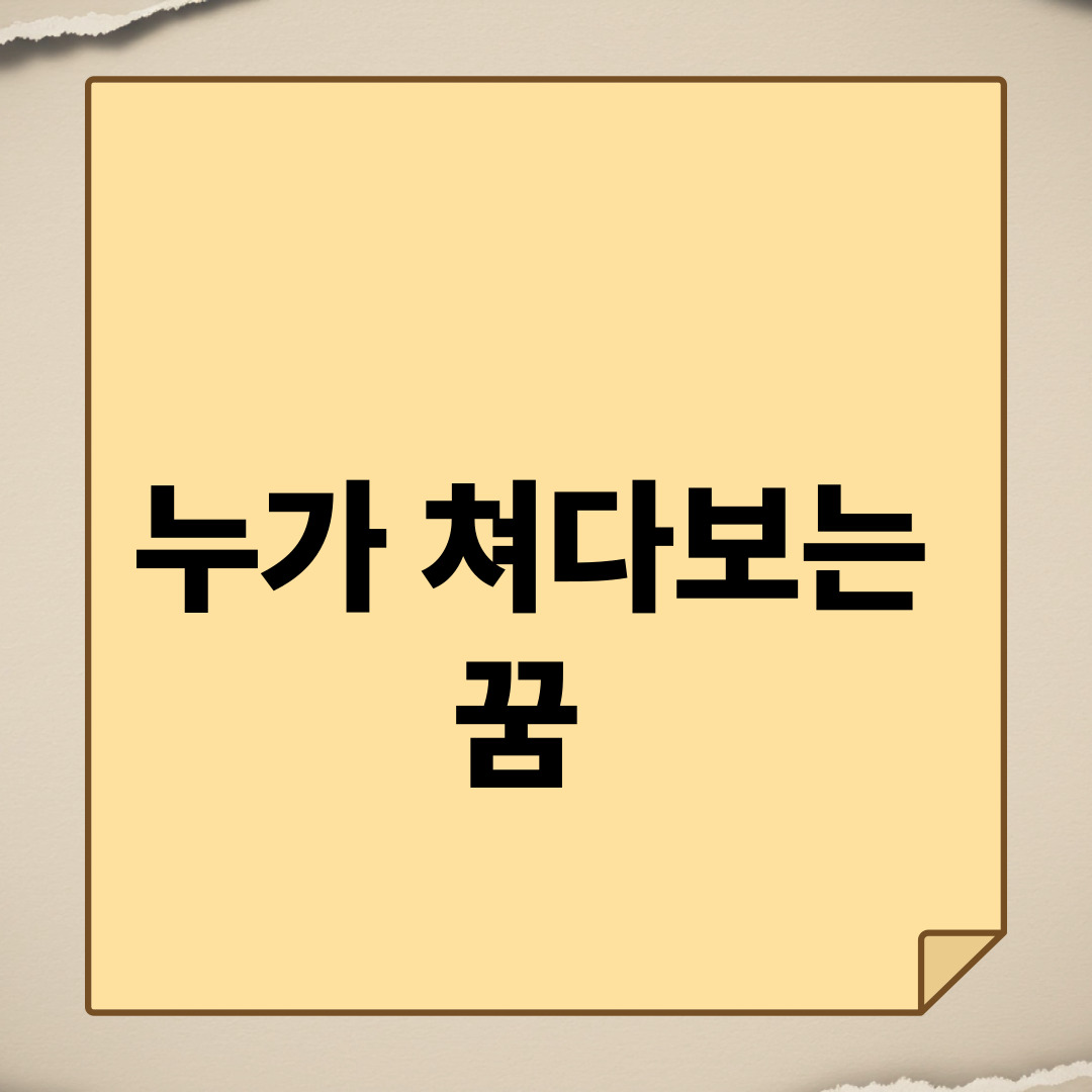 꿈에서 누군가 당신을 뚫어져라 쳐다보고 있었다면, 어떤 감정을 느끼셨나요? 누가 쳐다보는 꿈은 해몽에서 당신의 내면에 숨겨진 불안감, 타인의 시선에 대한 압박감, 혹은 주목받고 싶은 욕구를 상징하는 중요한 키워드입니다. 기분 좋게 쳐다보는 시선이었다면, 현실에서도 주변 사람들에게 인정받거나, 좋은 기회가 찾아올 것임을 의미하는 길몽입니다. 하지만 위협적이거나 불쾌한 시선이었다면, 당신이 현재의 삶에서 느끼는 부담감이나 감시당하는 느낌을 나타낼 수 있습니다. 누가, 어떻게, 그리고 당신의 감정이 어땠는지에 따라 꿈의 의미는 천차만별로 달라집니다. 지금부터 누가 쳐다보는 꿈이 가진 다양한 의미들을 깊이 있게 파헤쳐 보며, 당신의 꿈이 전하는 숨겨진 메시지를 함께 해석해 보도록 하겠습니다.